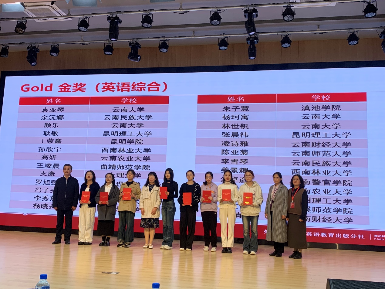 我校选手在英语类五个赛项中获得10项金奖、6项银奖、3项铜奖,为历年来我校参与该项赛事的最好成绩。其中,演讲赛项中,我校选拔推荐的三名选手材料科学与工程学院本科生罗笙元、国际学院研究生金子荧、外国语言文化学院本科生邓筱川获得金奖;英语综合能力赛项中,外国语言文化学院研究生耿敏、张晨祎、本科生闫佩橙获得金奖;口译赛项中,外国语言文化学院研究生窦君言获得金奖;笔译赛项中,外国语言文化学院研究生易旺获得金奖;短视频赛项中,建筑工程学院张凯深、交通工程学院游宇涵获得金奖。各赛项金奖获奖选手将代表云南省进入国赛参与角逐。