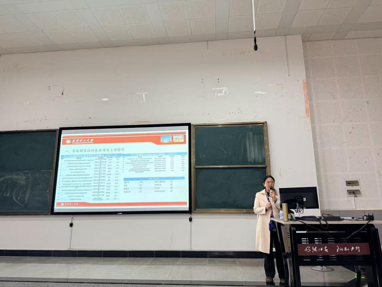 王英系统回顾了学院自2007年以来的国家社科基金立项情况,指出学院已实现“连续十年获批国家社科基金不断线”的优异成绩,并分析了立项项目覆盖的学科领域,为新一轮申报工作奠定方向基础。