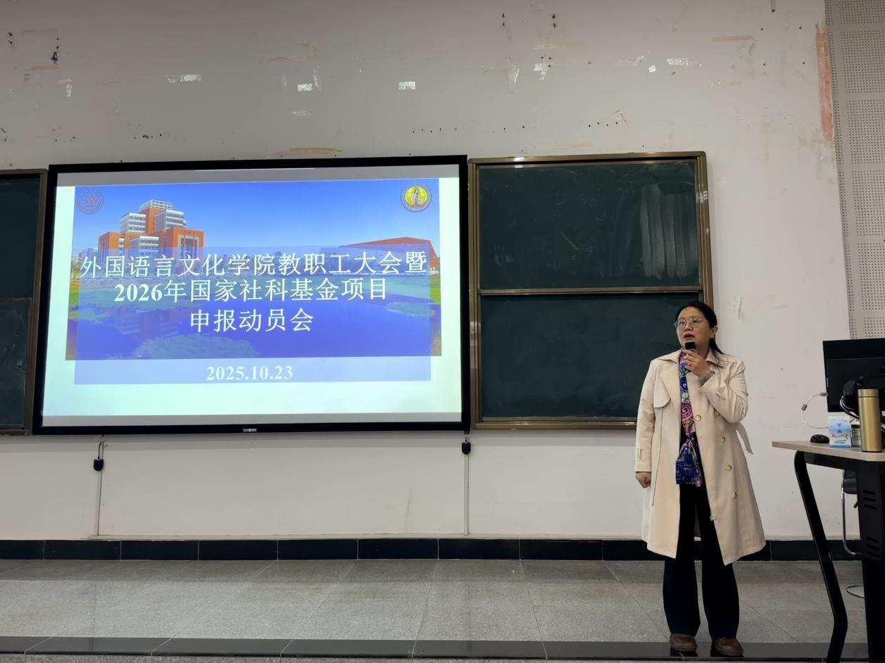 10月23日上午,外国语言文化学院召开2025-2026学年第一学期第二次教职工大会,围绕2026年度国家社科基金项目申报工作进行动员和部署。会议由院长王英教授主持,全院教职工参加。