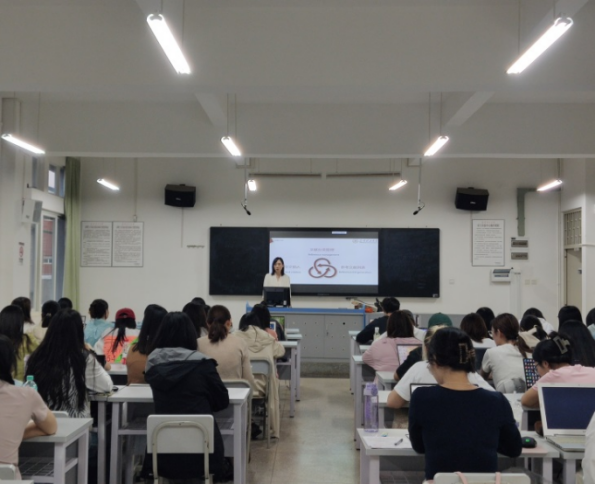 杨慧以“新文科背景下英语专业的学科性质和发展理念”为主题,解读了英语专业课程设置的理念与要求。强调语言学习在当今时代的必要性和重要性,语言的学习能够使人领略不同思维及其背后的文化,勉励学生们在辩证中汲取优良养分,呼吁同学们抓住时代所带来的机遇,积极应对挑战,珍惜三年宝贵时光,不断提升自我,勇担社会责任。