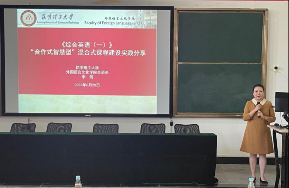 2023年度教育教学成果汇报分享会聚焦国家级一流本科课程“大学英语(一)”及国际一流课程“综合英语(一)”的建设成果,旨在树立典型、交流经验、相互学习、共同成长。“大学英语(一)”课程主讲教师孙慧副教授详细介绍了国家级一流本科课程申报书所包含的内容,申报的前期准备,以及课程团队的建设对成功获批国家级一流本科课程的重要意义,特别强调了大学英语教学过程中学生的learning by doing以及教师的growing by doing之间的相互促进、教学相长的内在联系。