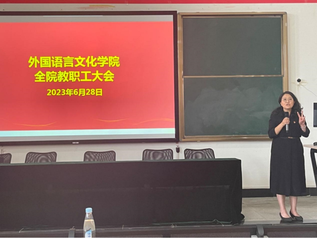 在博文100报告厅召开全院教职工大会暨2023年度教育教学成果汇报分享会。会议由王英院长主持,全院教职工参加会议。
