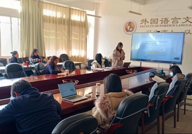 教师拓宽国际视野,了解国际英语教育和教师发展领域研究和实践的新进展。黄漪澜博士就参加全国新文科背景下高校外语教育教学改革与专业建设论坛进行了分享,对国内高校“外语+”复合型人才培养模式的先进经验进行了总结汇报。马倩副院长对西北工业大学国家级英语一流本科专业建设的经验与模式进行了领学,全体教师对“微专业”创新模式以及助推学校“双一流”创建的发展思路有了进一步思考和认识。