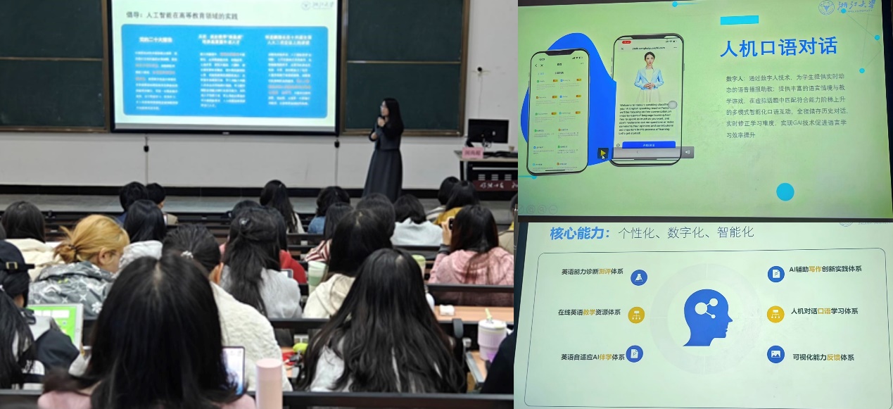 闵尚超聚焦浙江大学慧学外语智能学习平台(ZJU E-Lang)在外语教育教学以及提升学生外语综合应用能力等方面发挥的重要作用,详细介绍了其研究团队自主研发该学习平台的核心设计理念和基于该平台开展的教学研究。根据闵尚超的介绍,慧学外语智能学习平台聚焦数智化转型,基于认知诊断测评技术、大语言模型,英语能力自适应诊断测试、优质线上教学资源、英语自适应自主学习、英文写作创新实践、人机对话口语和可视化测评反馈六大模块,创新了“自适应诊断-自适应学习-可视化评价”全链路AI智能化伴学和线下线上全贯通的外语教学新模式。平台具备“数智化”“个性化”“精准化”三大特点和“个性化学习、差异化教学、科学化评价”三大优势,实现了英语学习可持续发展和英语教学信息化,对推动数智时代高校外语教学的转型与变化产生深刻影响。