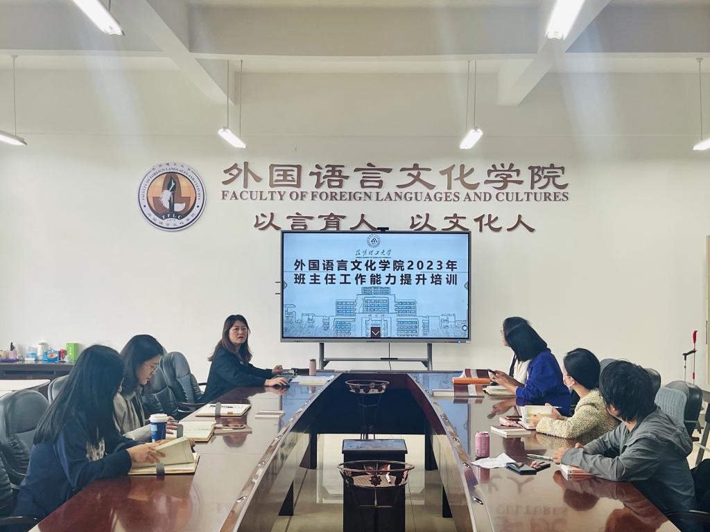 9月1日上午,外国语言文化学院2023年本科班主任工作能力提升培训在博文楼312会议室举办。培训由学院党委副书记邱清遐主持,全院8名本科班主任和4名年级辅导员参加,2019级班主任曾佑琴老师作为优秀班主任特邀代表出席。
