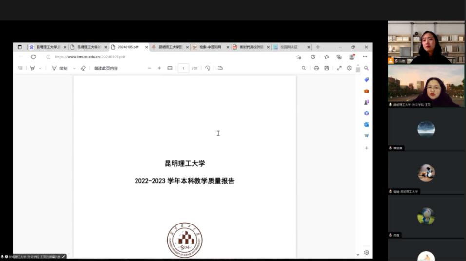 王英结合会议主题,领学了昆明理工大学本科教学质量报告,并做总结发言,强调2023年学校紧密推进各项工作,2024年将蓄势待发、迎接各类检查,学院要紧跟学校发展步伐,积极探索创新发展路径,新版培养方案和课程大纲修订、本科教育教学审核评估、毕业实习和毕业论文等工作要全面围绕提升人才培养质量这一核心,推动学院学科和专业的高质量发展。