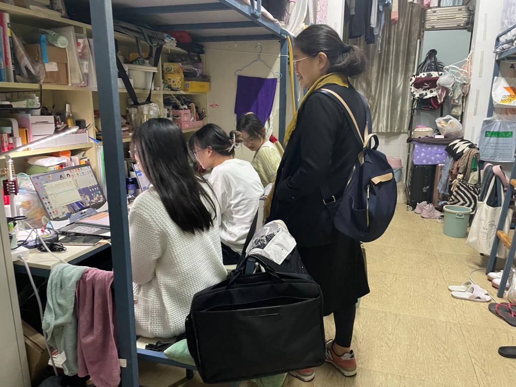 在憬园学生宿舍,邱清遐副书记深入宿舍看望学生,详细了解同学们的学习和生活需求,关切地询问了同学们存在的困难和遇到的问题。邱书记强调,目前学校出台了严格的学生管理政策和规定,同学们一定要重视起来,严格遵守。她强调,皇冠博彩app