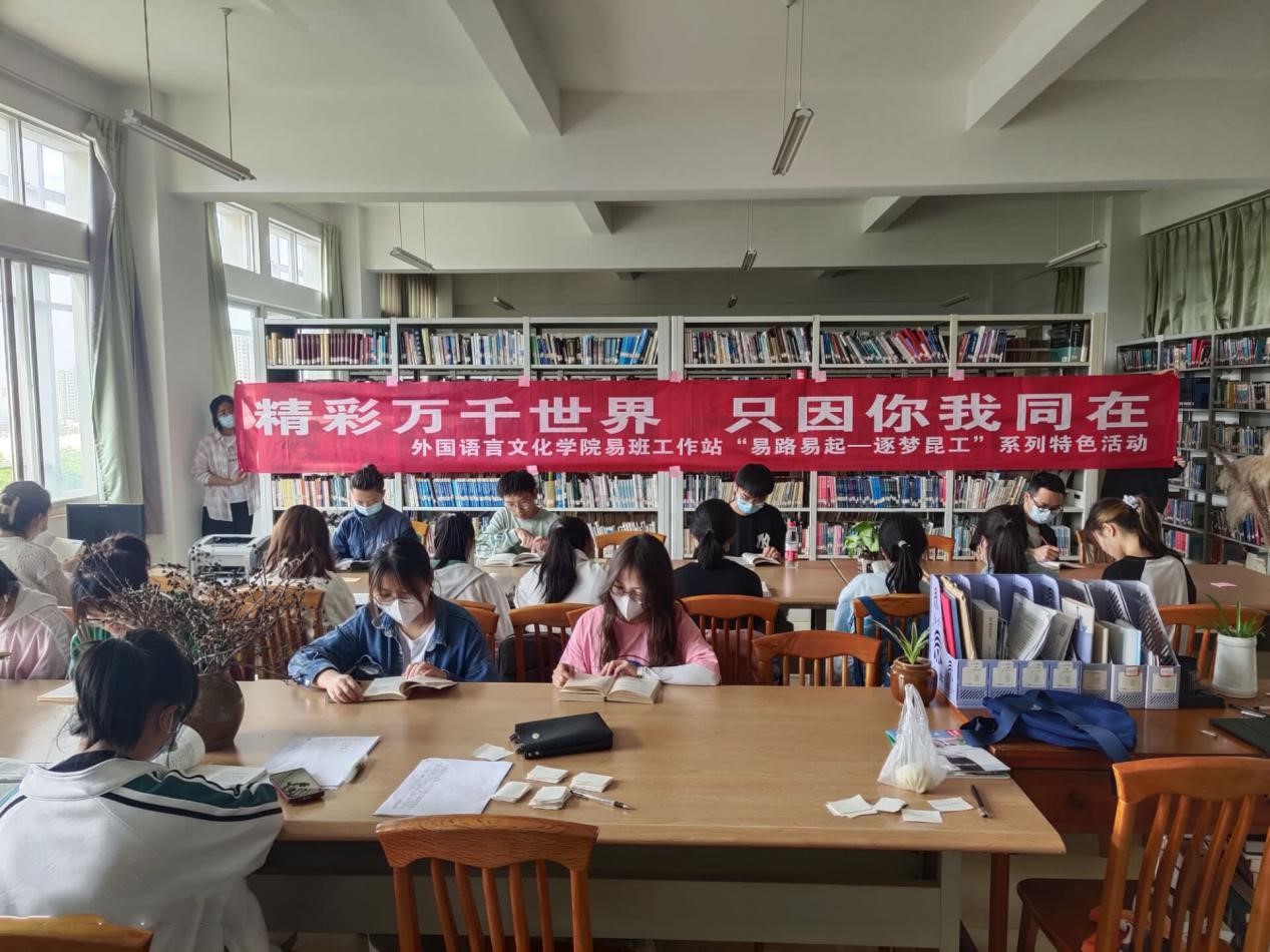 在博文408教室开展“书香外文——双语读书日”活动。本次活动由外文院学生会组织,2021级陆诗雨和吴玲丹同学主持,外文院全体学生参加。