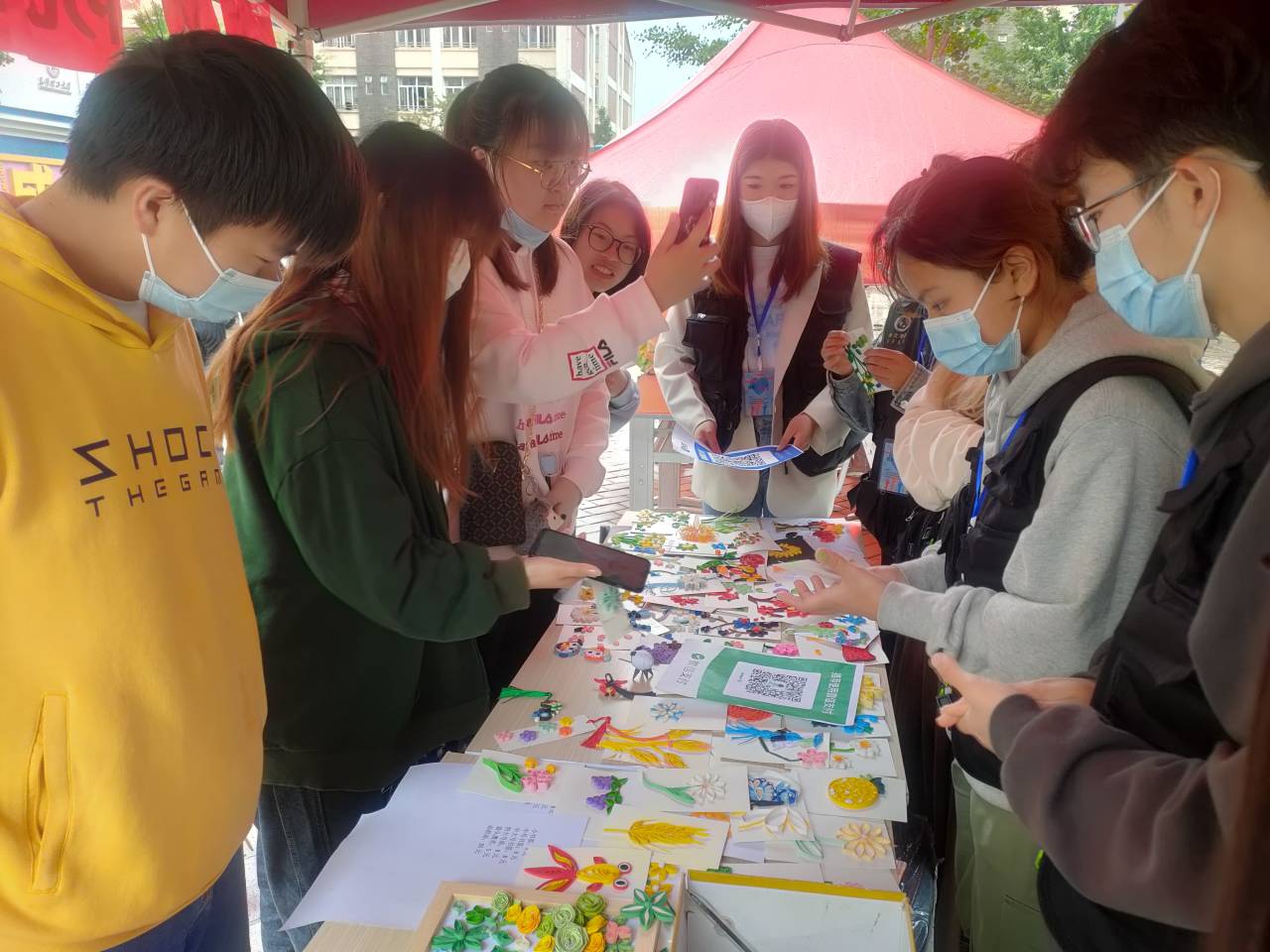 10:30,活动正式开始。有三个活动环节,首先,同学们自发爱心义卖,购买心仪的衍纸作品。接下来,同学们将自己平时生活中不需要的旧物进行捐赠。最后,同学们体验如何使用衍纸制作手工作品。在此期间工作人员认真负责地为前来参加活动的人员讲解活动流程,教授他们衍纸步骤和衍纸技巧,并在签到后进行抽奖活动。