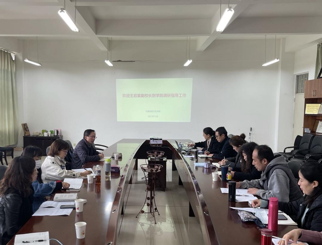 教师代表就个人研究方向、学术成果及展望、学术研究面临的问题进行了深度交流。他建议老师们开拓研究视野,充分发挥自己的语言优势,打破语言研究的工具性属性,从国际传播、学术话语深层分析等方面开展研究。他同时强调,外语教师要提高问题意识,正确把握国际国内形势,把学术研究与国家和云南区域经济社会发展的需求紧密结合。王启梁副校长还结合自身科研学术经历,就申报国家社科基金项目的选题方向凝练、研究思路梳理和研究方法的选择给予细致指导。