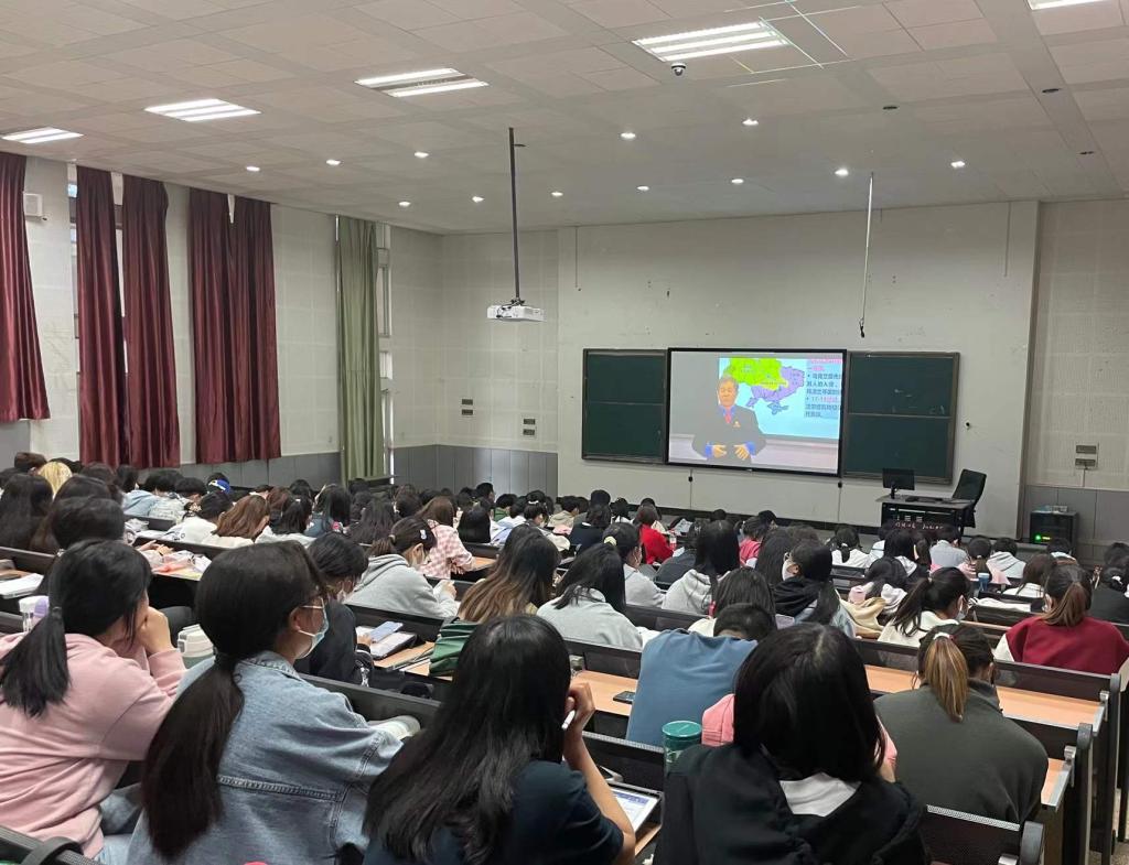 在校本科生、研究生共计四百余名集中观看授课。