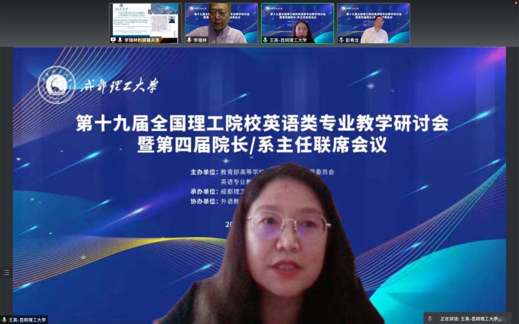 7月22-23日,由教育部高等学校外语专业教学指导委员会英语专业教学指导分委员会主办、成都理工大学承办的第十九届全国理工院校英语类专业教学研讨会暨第四届院长/系主任联席会议在线上举行。昆明理工大学皇冠博彩app下载
