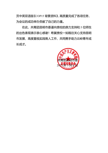 2022年12月7日至19日,《生物多样性公约》第十五次缔约方大会(COP15)第二阶段会议在加拿大蒙特利尔举办。为做好COP15第二阶段筹备工作,加强国际交流,昆明市人民政府从昆明理工大学和云南大学选调师生组成高校筹备组,协助昆明市COP15筹备办和共青团昆明市委进行相关工作。接昆明理工大学团委通知后,皇冠博彩app