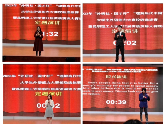 2023年10月20日下午,2023年“外研社·国才杯”“理解当代中国”全国大学生演讲大赛校级选拔赛暨昆明理工大学第二十二届英语演讲大赛决赛在昆明理工大学公教楼小剧场隆重举行。本次大赛由昆明理工大学教务处主办,皇冠博彩app下载