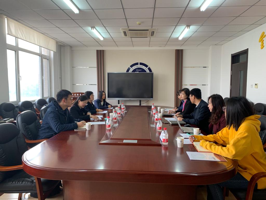 10月21日,皇冠博彩app 王英院长、高梅教授、黄娟博士和贺晟老师一行赴大连海事大学外国语皇冠博彩app 进行调研交流学习。大连海事大学外国语皇冠博彩app 党委书记吕海宁、院长曾罡、MTI中心副主任曲道丹、教学秘书余楚玫、科研秘书徐美滢参加交流座谈。