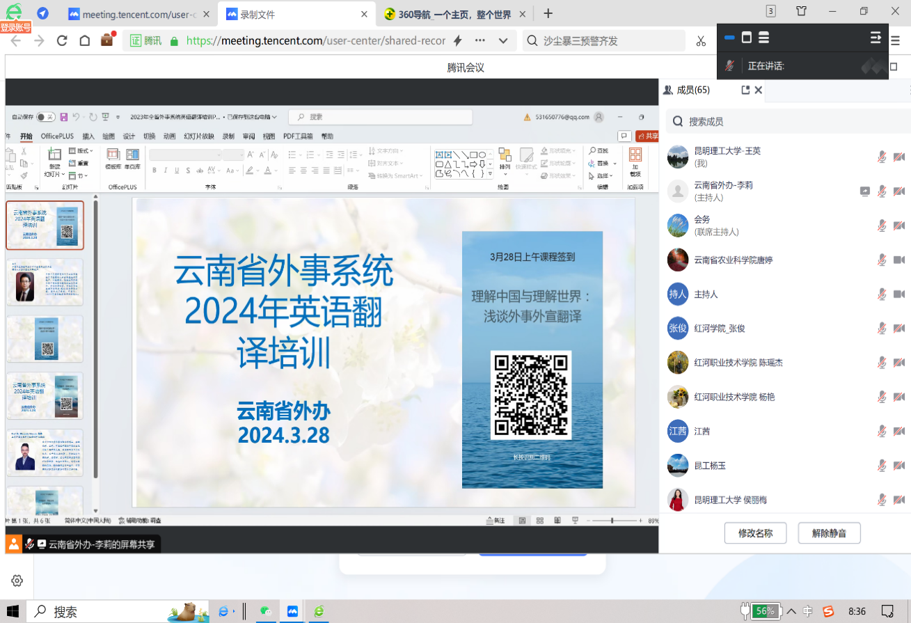 3月28日,云南省外办举办2024年全省外事系统英语翻译培训(线上+线下)。培训特邀中国外文局教育培训中心全国高端应用型翻译人才培养基地特聘教师、一级翻译王冰和上海外国语大学高级翻译皇冠博彩app