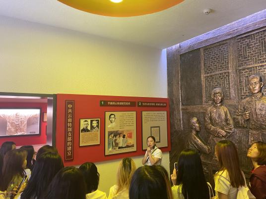 7月1日上午,在中国共产党成立103周年之际,团队参观了位于昆明市五华区节孝巷的中共云南省委地下党建党旧址。在讲解员的解说下,师生进一步了解了中国共产党的光辉历程和革命先烈们在艰难岁月中不畏生死、英勇战斗的伟大精神。参观结束后,团队中的党员同志们在党旗下重温入党誓词。