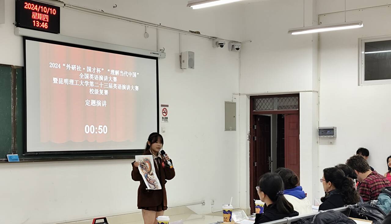 2024年10月10日下午,2024“外研社·国才杯”“理解当代中国”全国英语演讲大赛暨昆明理工大学第二十三届英语演讲大赛复赛在公教楼隆重举行。