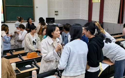 在师生现场双选交流环节,学生结合自己的学习兴趣和意向导师进行了热烈交流,初步确定了毕业论文选题方向。