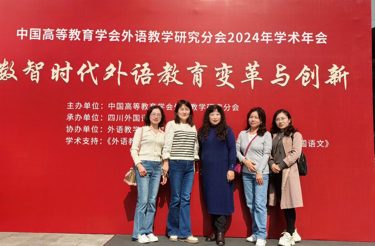 11月8-10日,中国高等教育学会外语教学研究分会2024年学术年会在重庆举办,杨玲副院长、常丹丹副教授、李科副教授、孙慧副教授、廖春兰博士参加了本次年会。年会主题为“数智时代外语教育变革与创新”,来自全国近200所高校的400余位代表参加了本次年会。