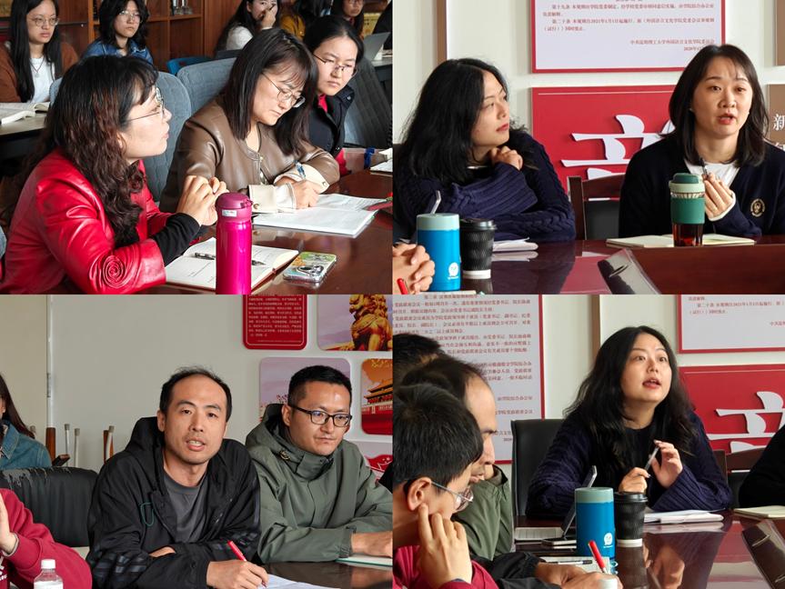 英语系、大学英语第一、第二教研部、欧亚语教研部负责人分别从系部教学实践出发,就智慧教学平台建设、平台数据采集、AI使用的学术诚信问题、外语课程设置和教师发展等方面与闵尚超进行了深入交流与探讨。