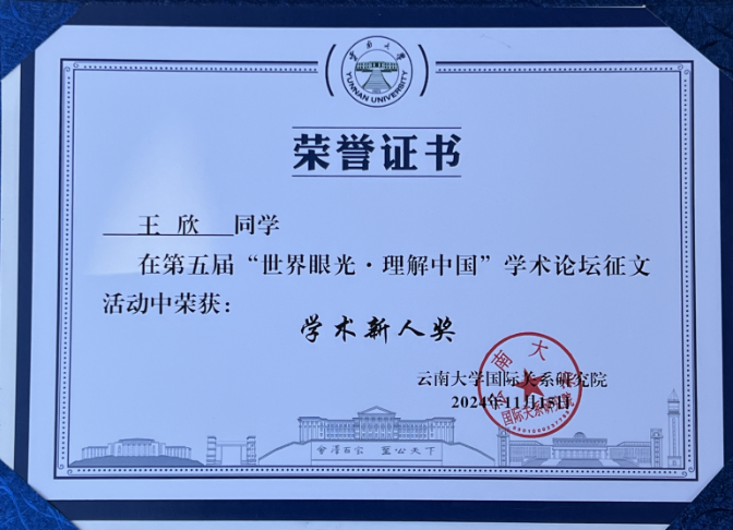 大学、香港城市大学、莫斯科国立大学、泰国宣素那他皇家大学、菲律宾莱希姆大学等40余所国内外高校来稿126篇,经云南大学国际关系研究院·区域国别研究院组织相关专家进行初评、复评后,共评出一等奖1名,二等奖2名,三等奖3名,学术新人奖10名。