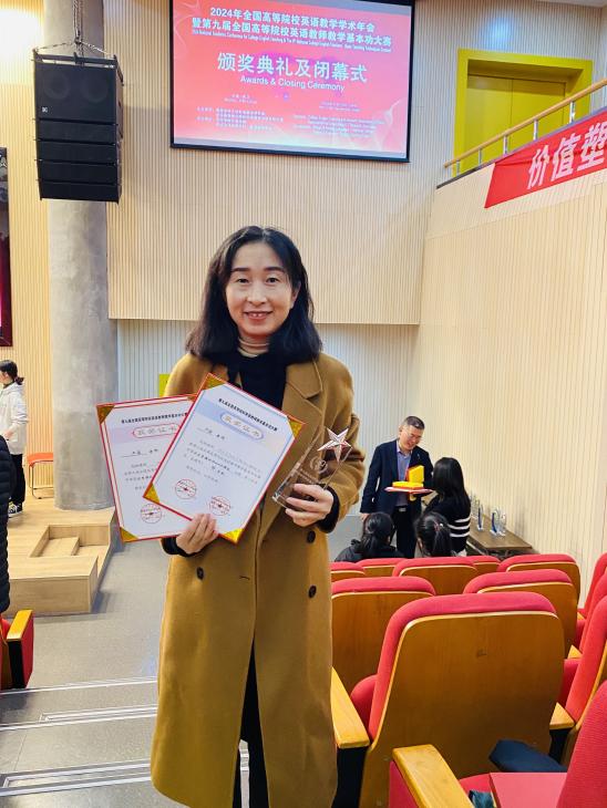 教师严嘉凭借出色的教学设计和扎实的教学功底,荣获大学英语组国家级二等奖。杨玲副教授带领大学英语POA教学团队为本次比赛提供了全程指导,荣获优秀指导教师奖。