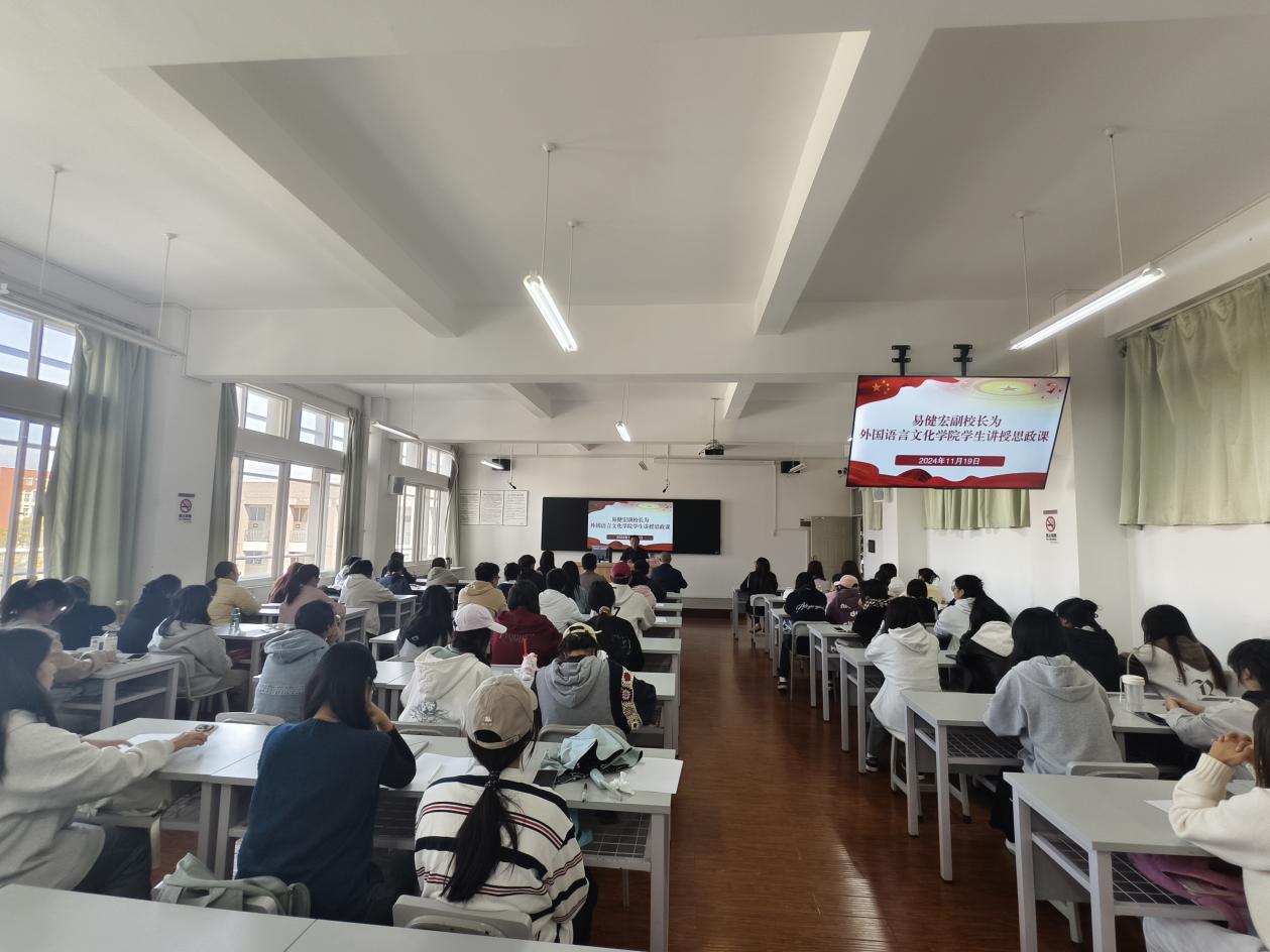 易健宏副校长以“心怀‘国之大者’,勇担民族复兴重任”为题,围绕学习贯彻党的二十大精神、党的二十届三中全会精神、云南省第十一次党代会精神等,带领同学们深入学习领会习近平新时代中国特色社会主义思想,激励同学们肩负起新时代英语专业学生的使命。
