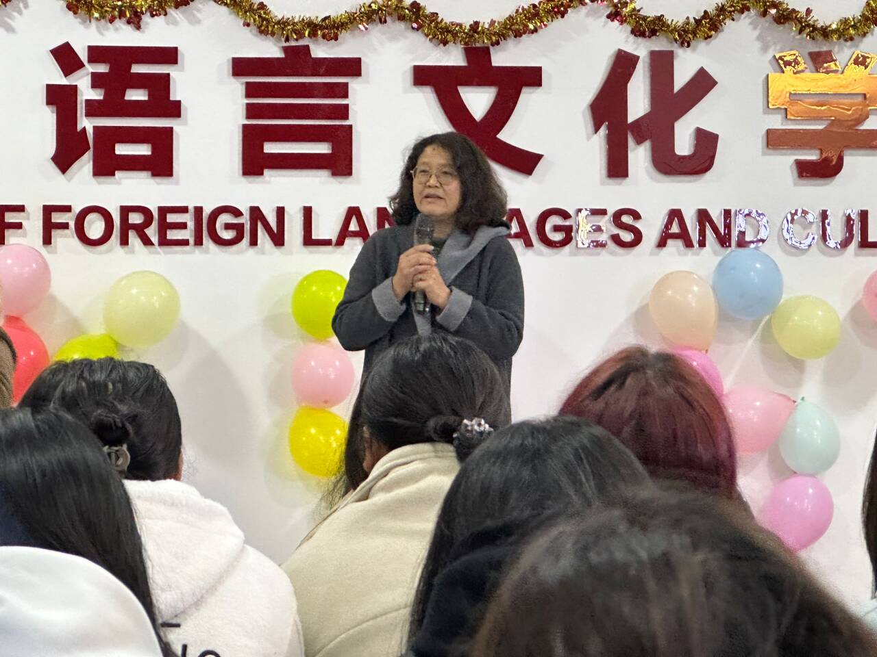 于2024年12月19日晚在博文楼举行以“青春拂晓,‘新’然而至”为主题的迎新游园晚会活动,全院师生欢聚一堂,共祝新年。
