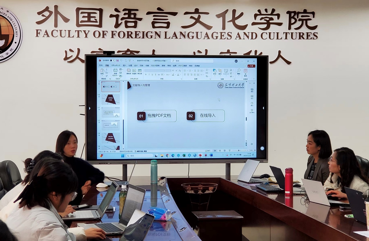高维以Zotero文献管理软件为例,详细介绍了语言研究中的文献管理方法,带领学生们了解Zotero的主要功能,包括文献分类管理、文献翻译和记笔记等功能。她还演示了如何系统进行文献导入与管理。最后,她展示了Zotero在学术论文写作中的应用,包括文中引文的插入和参考文献的自动生成。在交流讨论中,她鼓励学生们积极阅读文献,运用相关软件来提高阅读效率。