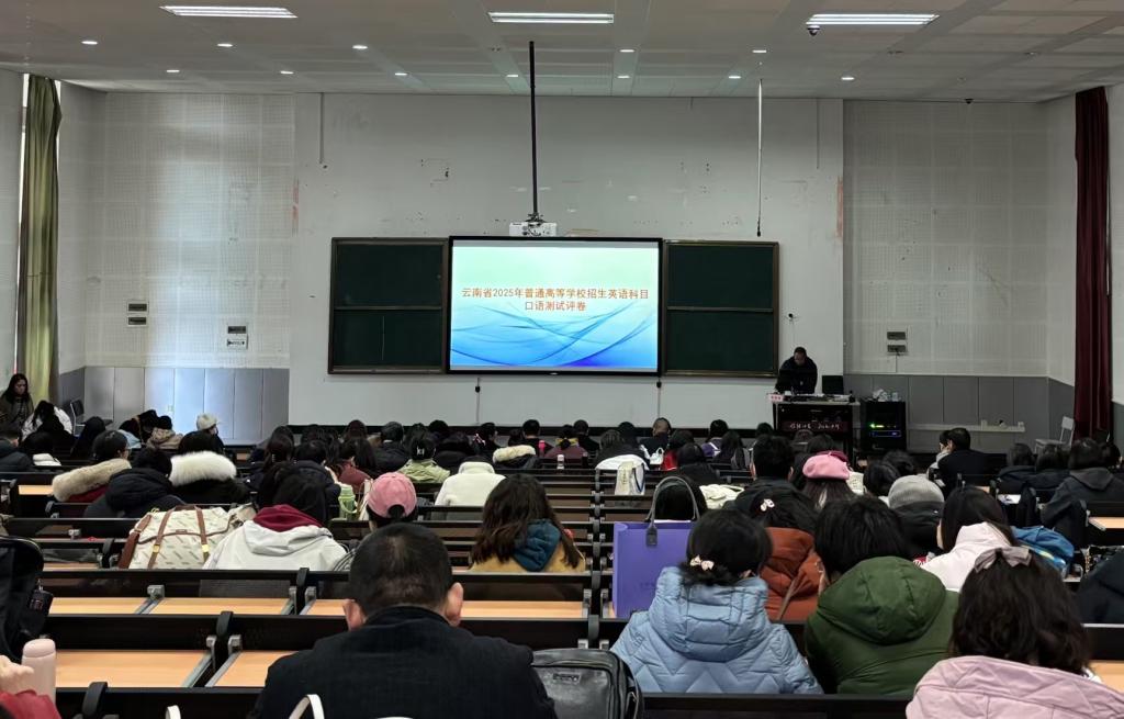 云南省2025年高考英语口语测试评卷工作于1月17日在我校顺利结束。该项工作历时五天,来自我省20所高校、14所高中的共计130多名教师参与评卷工作,圆满完成了11万份口语测试评卷任务。
