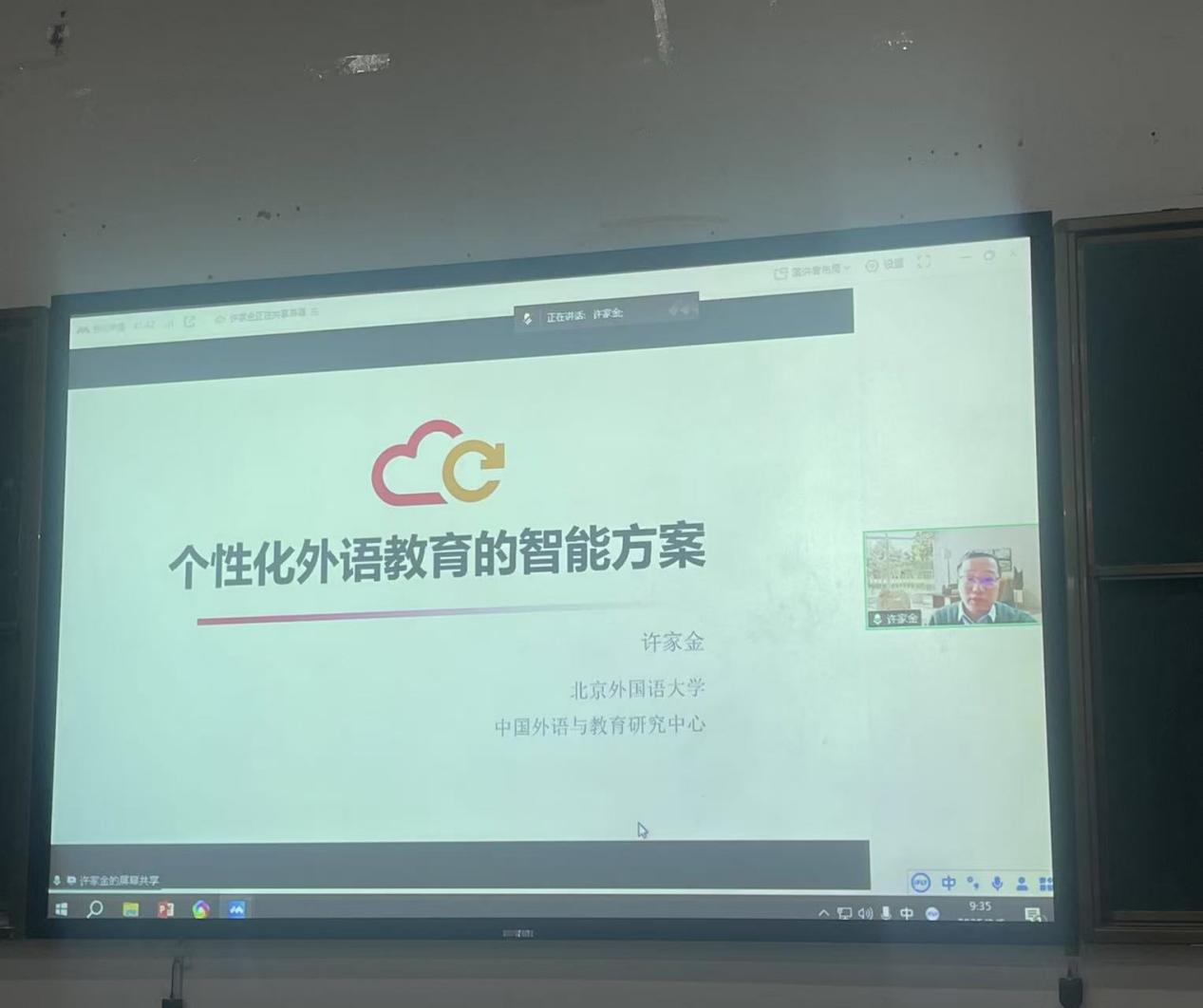 会议第二阶段为学术讲座。北京外国语大学的许家金教授作了题为《个性化外语教育的智能方案》的专题学术报告。许家金本从主体和客体两个视角,探讨大语言模型对个性化外语教育发展的中介作用,并通过具体丰富的教学案例展示了基于国内外大语言模型开展“AI for Education”以及“AI for Research”的理论基础和研究路径。