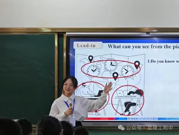 孔令霜老师执教的内容为2025人教版七年级下册 Unit 5·Here and Now-Section B 阅读课。本堂课围绕“我们如何与他人分享生活”这一主题展开,设计思路清晰,贴近单元核心,充分体现了“全球不同时区生活状态”的多样性与文化趣味性。课堂以世界时区图和启发式问题导入,巧妙引入时差概念,激发学生对不同文化生活的兴趣与探究欲。通过重庆、内罗毕与纽约三地生活状态的对比,教师引导学生层层深入文本,从略读到细读,由整体理解到细节捕捉,并结合视频资源与地理知识,强化跨学科融合,拓宽学生认知边界。任务设计方面,鼓励学生模仿文本内容,撰写并展示自己的视频脚本,贴近真实生活场景,提升语言表达与创造能力。优点:阅读层层推进,任务逻辑清晰,帮助学生构建语篇理解能力。改进方向:可补充生活化语料,如校园宣传视频的脚本,增强语境体验。