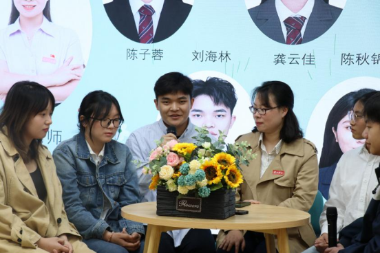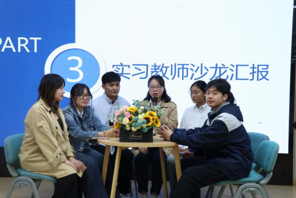 教师不仅要在课堂内做好传道、授业、解惑的角色,更要在课堂外做好校园的建设者。在沙龙汇演环节中,由何徽老师组织六位实习老师展开沙龙分享。