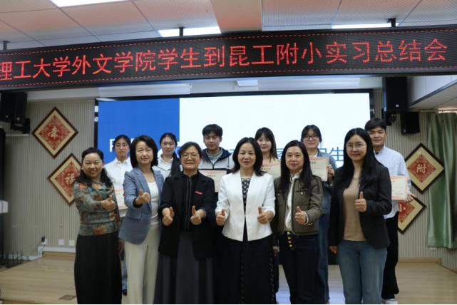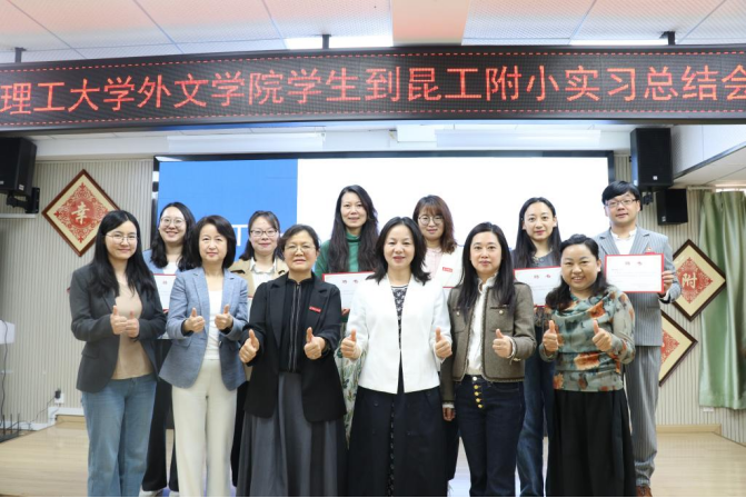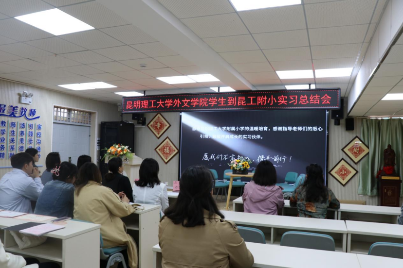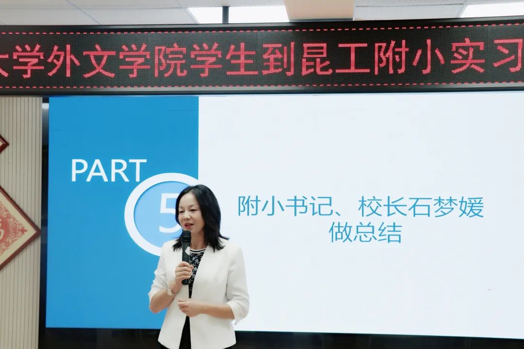 院长王英、党委副书记孙冠华、带队教师左屹、班主任张星围,以及昆明理工大学附属小学书记、校长石梦媛,校长助理白璐莹、教导处主任马会芬、6位实习指导教师出席此次实习总结会,活动由大队辅导员邓智君老师主持。