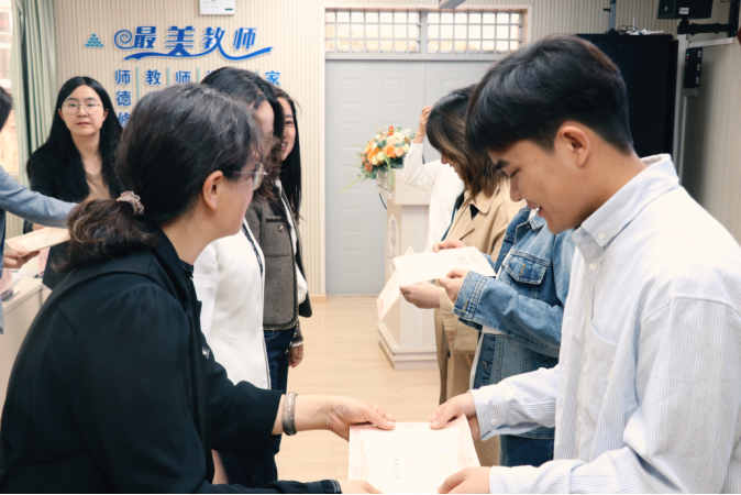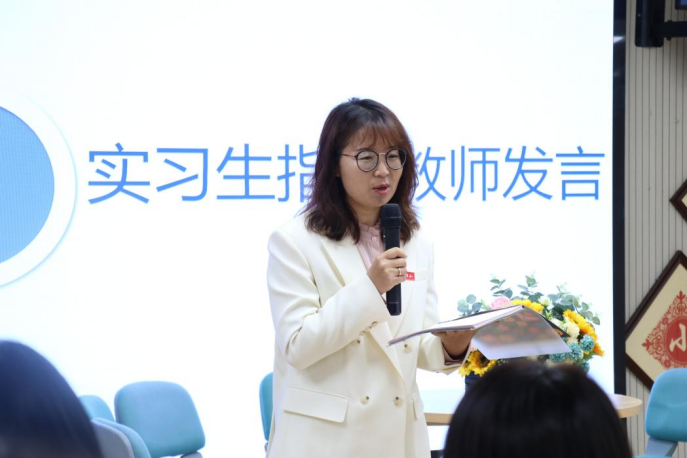 “看着你们从初登讲台的紧张,到如今课堂上的从容自信,做到了很好的蜕变,当经历了煎熬就是要走向成长,走向工作,这段经历是段宝贵的经历,对毕业后走向岗位都是一段好的回忆。感谢外文院各位领导的重视。祝各位实习生在今后能够有好的未来。”
