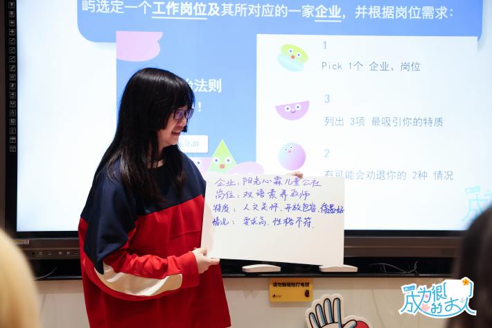 随后,同学们参加了职业生涯规划与指导专场活动,通过分组开展霍兰德职业倾向测试,深入探索个人兴趣与职业适配方向。张惟舒结合小组测试结果及教育行业的发展现状,针对学生提出的“跨专业就业可能性”“语言类岗位核心竞争力”等问题进行深入解答;罗雅楠详细介绍了目前的人才需求情况和青年教师的职业发展路径,结合公社近年的校园招聘情况,为学生在校期间的专业学习规划提出了具体的意见建议,并着重强调了通用技能在求职中的重要性,鼓励学生立足语言类专业优势,主动转变就业观念,拓宽职业视野。