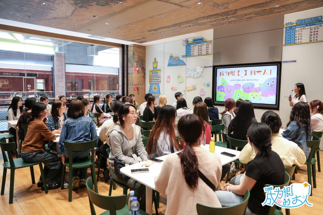 在公社人力资源招聘负责人罗雅楠、人力资源校招专员张惟舒的引导下,游学团队首先参观了璞玉书店及心霖公社教学园区。罗雅楠详细介绍了公社的发展历程和教育理念,重点阐释了公社在打造“学习型社区”的创新实践。在园区参观过程中,师生们依次走访了开放式的协作办公区、智能化教学空间、社区博物馆以及好奇心小剧场,深入了解了公社在开展素养教育和跨学科教育方面取得的成效。