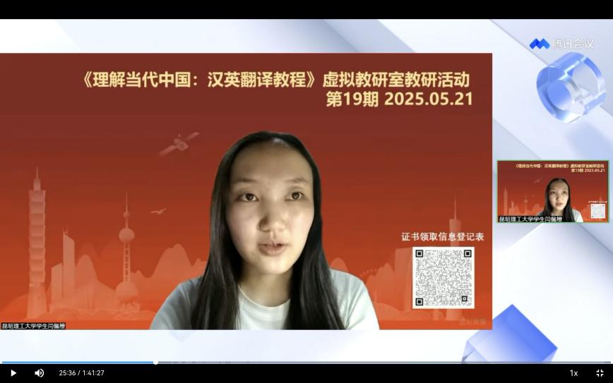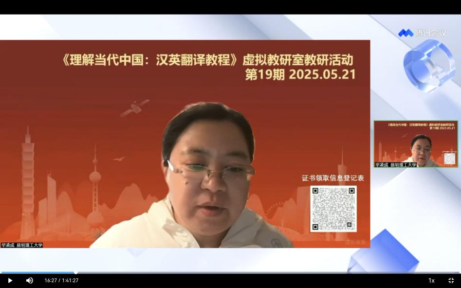 5月21日,教育部《理解当代中国:汉英翻译教程》虚拟教研室举办第19期线上教研活动。皇冠博彩app下载