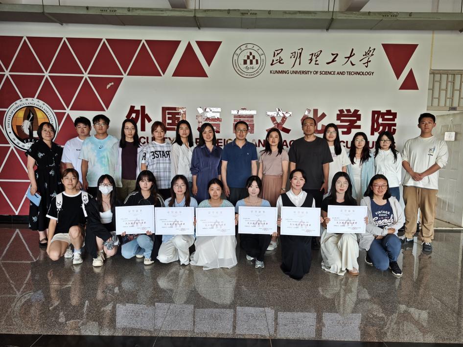 严格评审,英语专业本科生王明月、邓筱川荣获文江一等奖学金,李亭劼、罗瑶、王恩熙、宋文馨四位同学获得文江二等奖学金。与会领导依次为获奖学生颁发证书。