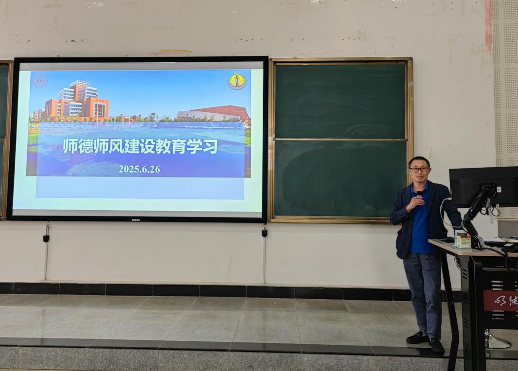 党委书记刘建平领学师德师风建设专题内容,并结合高校师德失范典型问题开展警示教育。会议要求全体教职工要坚守政治底线,增强安全意识,做好暑期的安全工作。