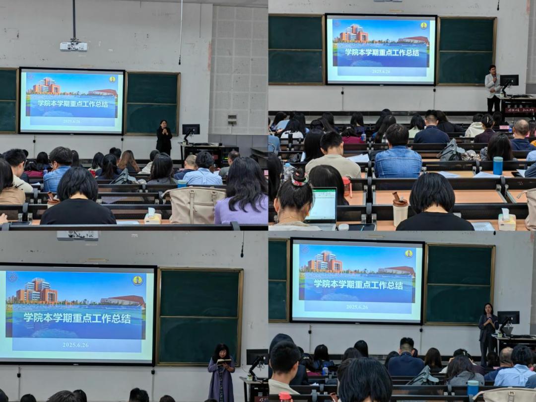 在博文100报告厅召开全院教职工大会,对2024-2025学年春季学期工作进行总结,对暑期安全工作进行部署。会议由王英院长主持,全院教职工参加会议。