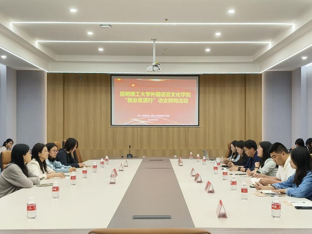 7月1日下午,团队前往云南(昆明官渡)国际人力资源服务产业园进行参观访问。活动前期,孙冠华副书记与昆明市官渡区人力资源和社会保障局负责人进行了充分的对接与沟通。通过人社局牵头,团队一行与昆明市就业促进会、云南海普优闻人力资源有限公司、昆明厚致百盈企业管理有限公司、昆明飞蓬跨境电子商务有限公司等代表性单位的负责人开展座谈,双方围绕英语专业学生的就业选择与职业发展路径展开充分的讨论和沟通。座谈会上,孙冠华副书记详细介绍了皇冠博彩app