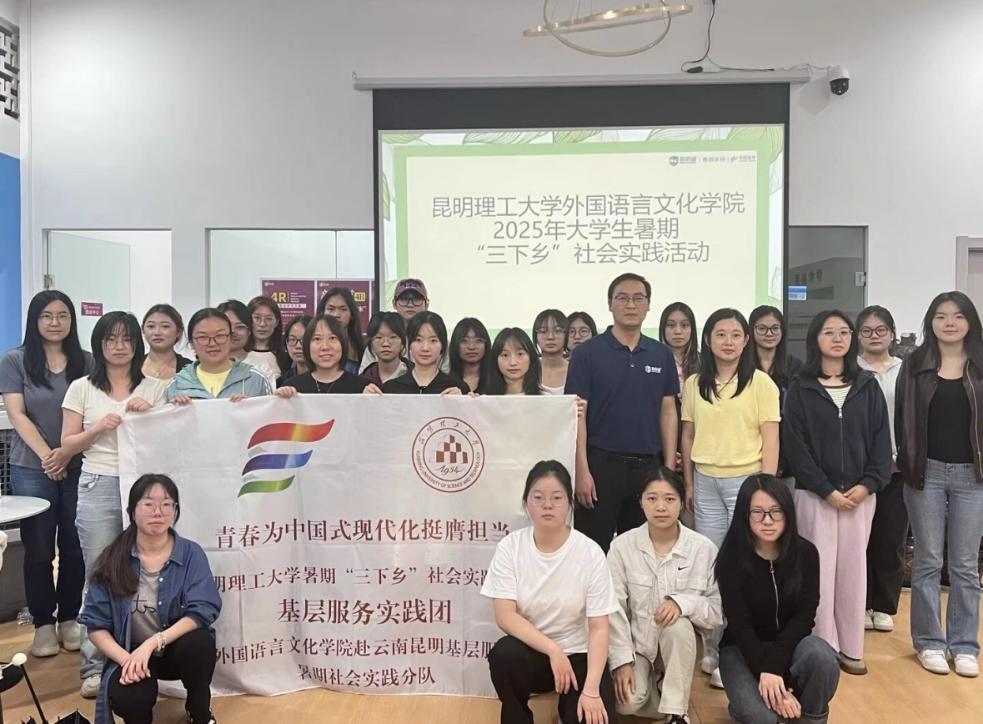 组织师生实践团队赴昆明市多家企业单位开展暑期“三下乡”社会实践暨“访企拓岗促就业”专项活动。本次活动由院党委副书记孙冠华带队,团委书记李雪瑜、学工办副主任刘芋蔓、本科生班主任张星围以及22名2026届本科毕业生参加活动。