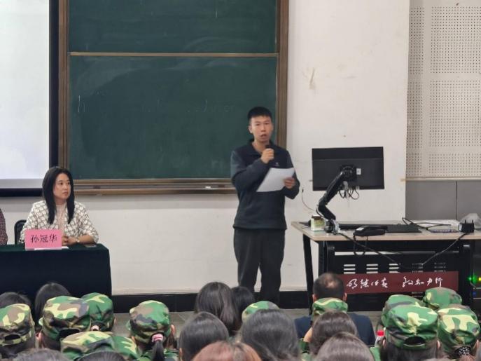 2025级MTI研究生徐可帆作为新生代表发言。他向同学们分享了自己参兵入伍的经历,传递了部队中“坚定信念、听党指挥、百折不挠、敢为人先”的奋斗力量,鼓励新生以坚韧的意志对抗学习工作中的困难,以饱满的状态迎接新生活。