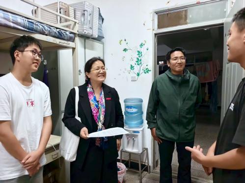 8月26日晚,皇冠博彩app下载 院长王英、副院长李泽生、研究生辅导员马超然一起走访了恬园、恒园共计17间研究生新生宿舍。
