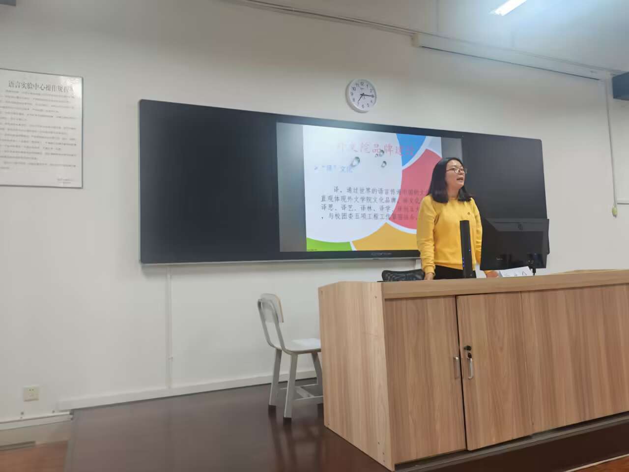 专业概况,讲解了学习英语的重要意义,以及复合型外语人才应该具备的三个条件:有家国情怀,有全球视野,有专业本领。她寄语全体新生要遵守规矩,方圆成;强健体魄,身心悦;与人友善,自奋进;勤奋求学,强本领;砥砺前行,守初心。