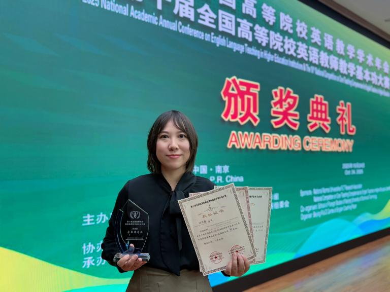青年教师刘芋蔓凭借出色的教学设计和扎实的教学功底,以第一名的成绩荣获优秀课例评比•说课组全国特等奖。杨玲副教授带领大学英语POA教学团队为本次比赛提供了全程指导,荣获优秀指导教师奖。