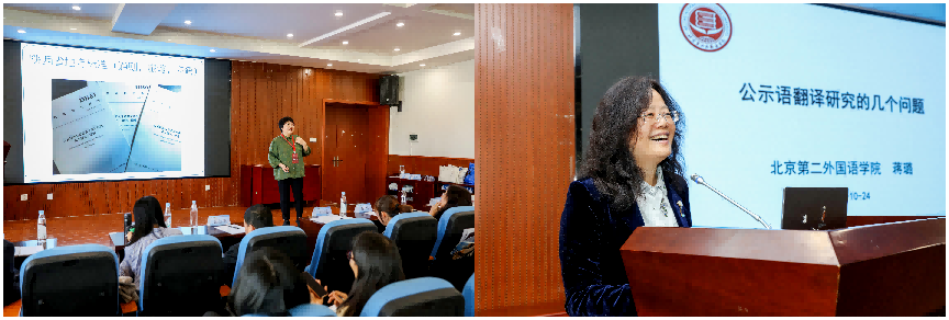 院长、北京市翻译协会监事长蒋璐、西安外国语大学旅游文化多语种译介研究中心主任杨红英分别作了有关公示语规范和翻译实践的专题报告。专题研讨促进学员对翻译理论认知与翻译教学实践深度融合,推动翻译人才培养与地方国际交流需求高效适配。