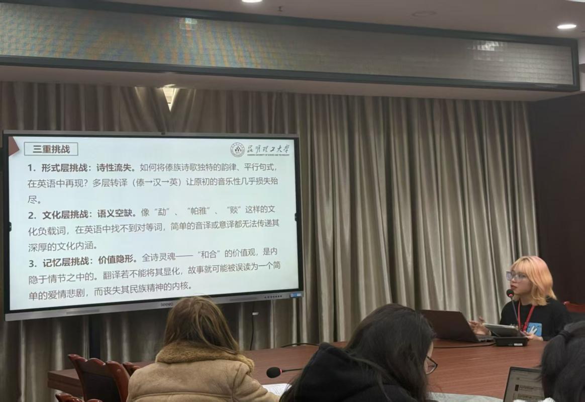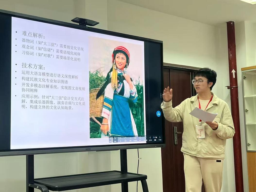 外国语言文学专业研究生依应叫仑(2024级)、李亚彬(2025级)应邀参会,并在分论坛分别宣读了题为《民族志诗学视角下傣族叙事诗<葫芦信>英译中的文化记忆重构》《数字人文赋能<阿诗玛>英译的共同体价值传播研究》的学术论文。